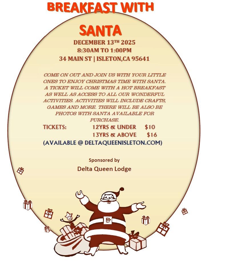 The Delta Queen Lodge is hosting Breakfast with Santa on Saturday December 13th. The lodge will use the back rooms from art & crafts, ornament decorating and games.