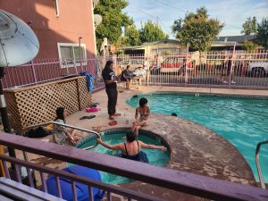 We have a large back room (formerly a casino) that will be open with a bar, and access to the pool area.